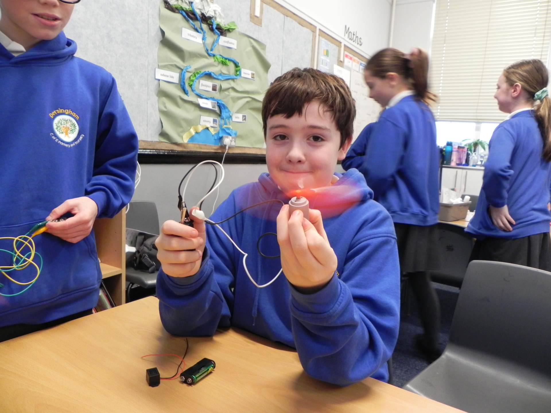 In Mr Williamson’s classroom, children investigated electricity and circuit building. They gradually added components and experimented with different configurations, learning how circuits work and how changes affect outcomes.