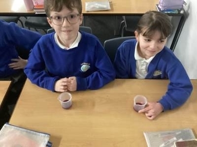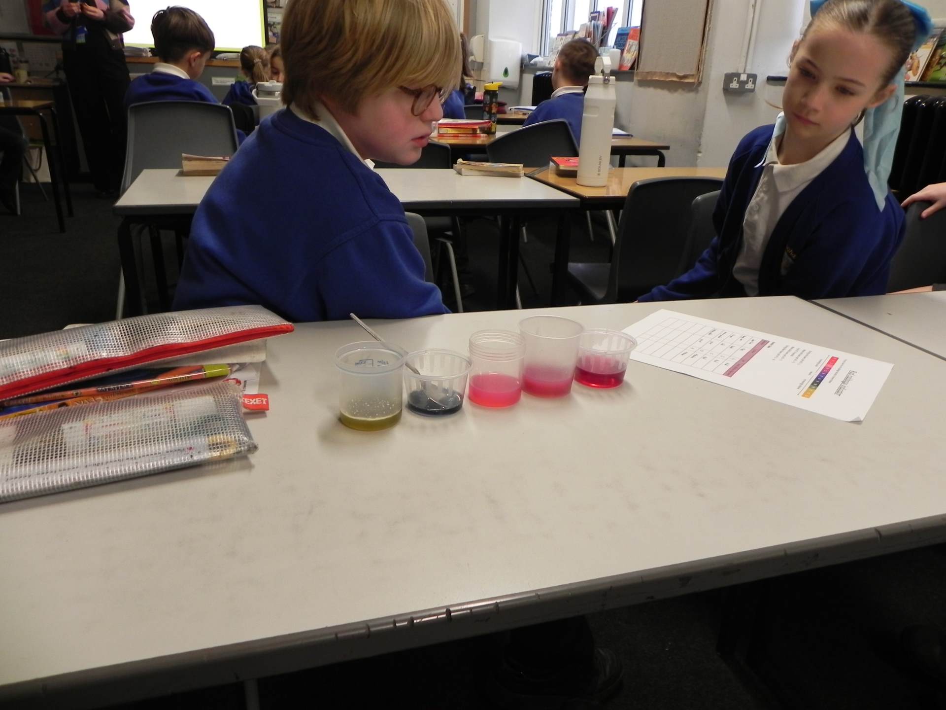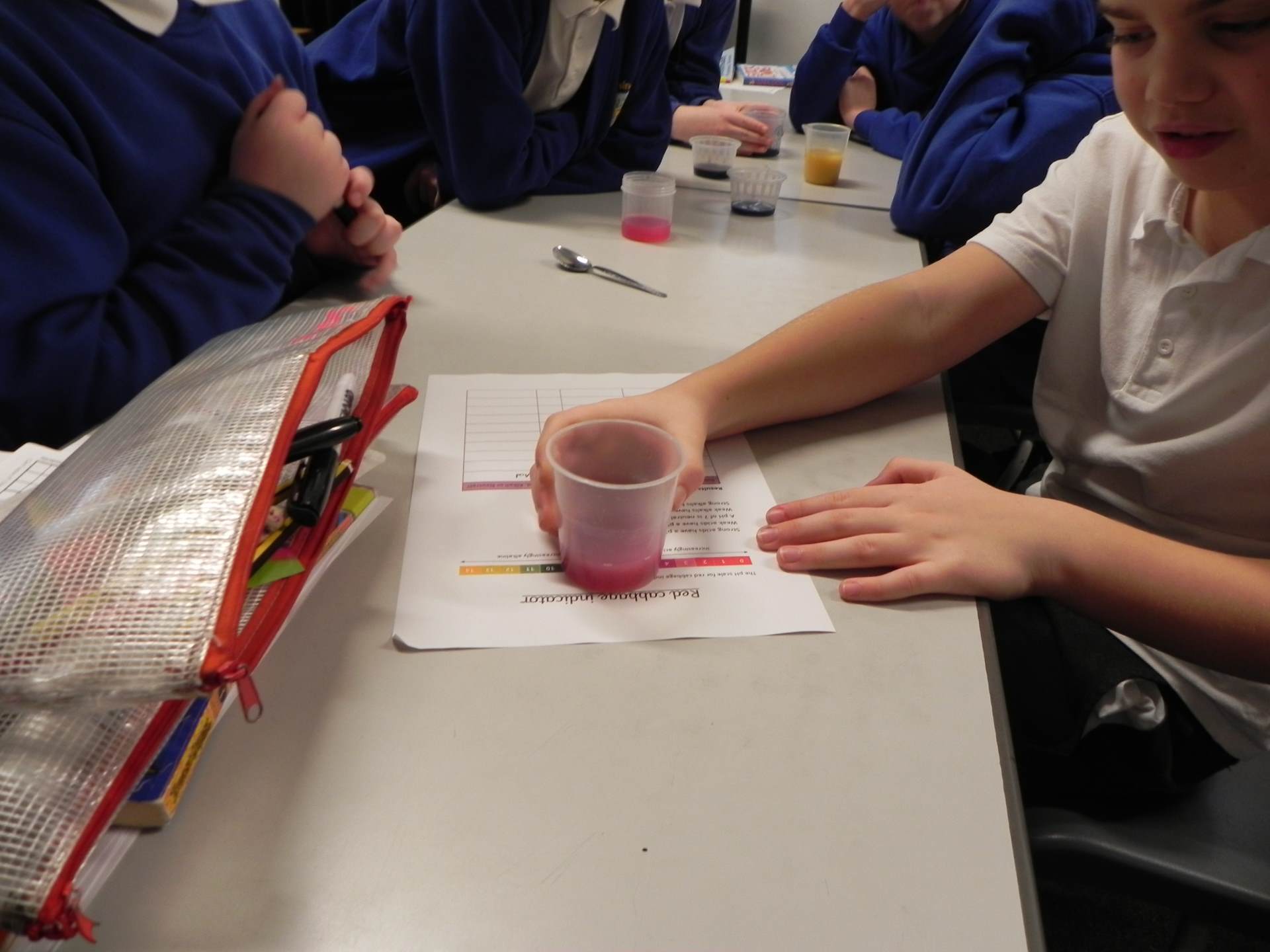 Miss Scott, our Year 5 teacher, brought a Key Stage 3 topic to life for Key Stage 2 pupils by creating red cabbage universal indicator. Children tested substances such as lemon juice, vinegar, orange juice and baking powder to identify whether they were acids or alkalis. Miss Scott said,