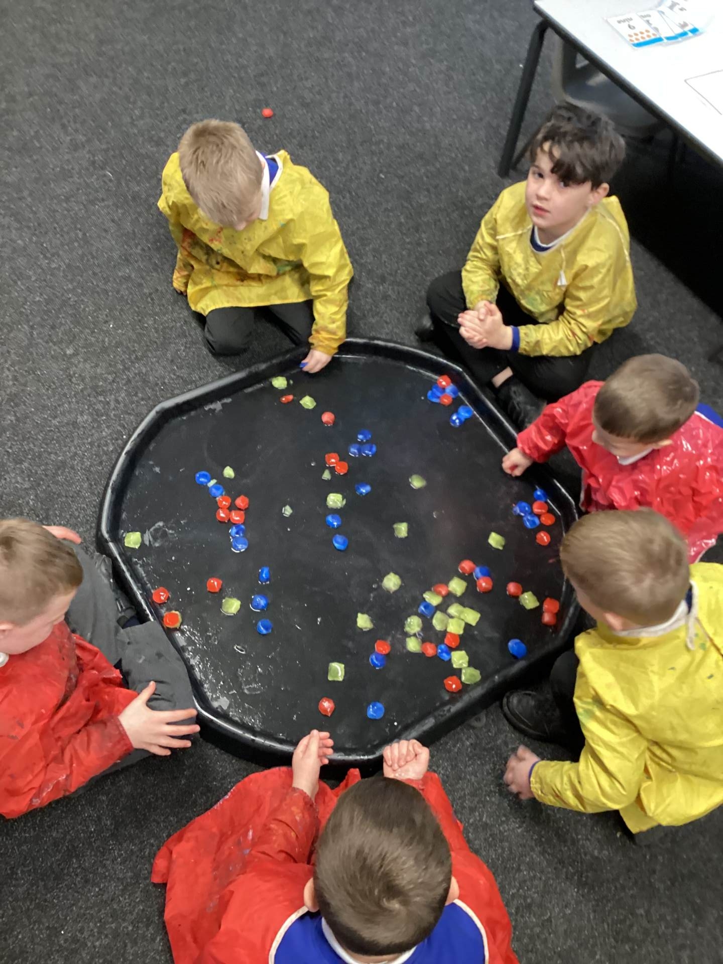 Miss Liscsey led sessions on solids and liquids, where children built impressive ice towers before being challenged to decide whether non-Newtonian fluids should be classified as solids or liquids. This sparked plenty of curiosity and debate as children tested their ideas.