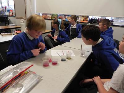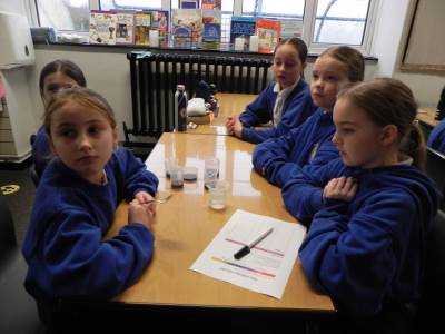 Finally, Mrs Taylor, our artist in residence, combined science with creativity by exploring water resistance. Children then used their knowledge to produce water-resist artwork, using Vaseline, candles and wax crayons to create striking watercolour pictures.
